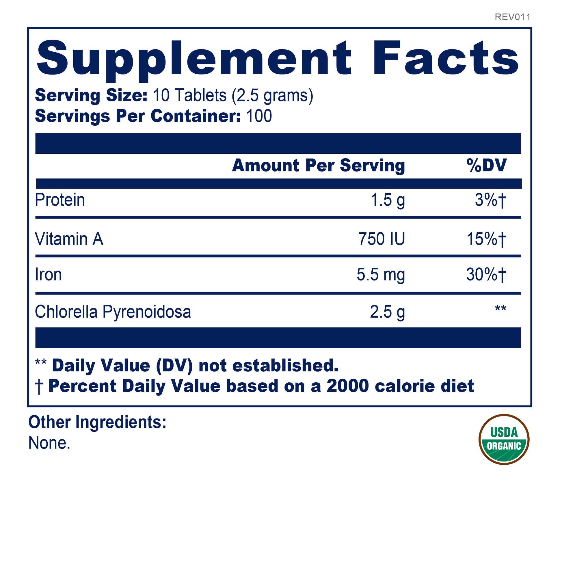 • 100% Certified Organic cracked-cell wall Chlorella Pyrenoidosa, grown in sunlight, purified water, and filtered air